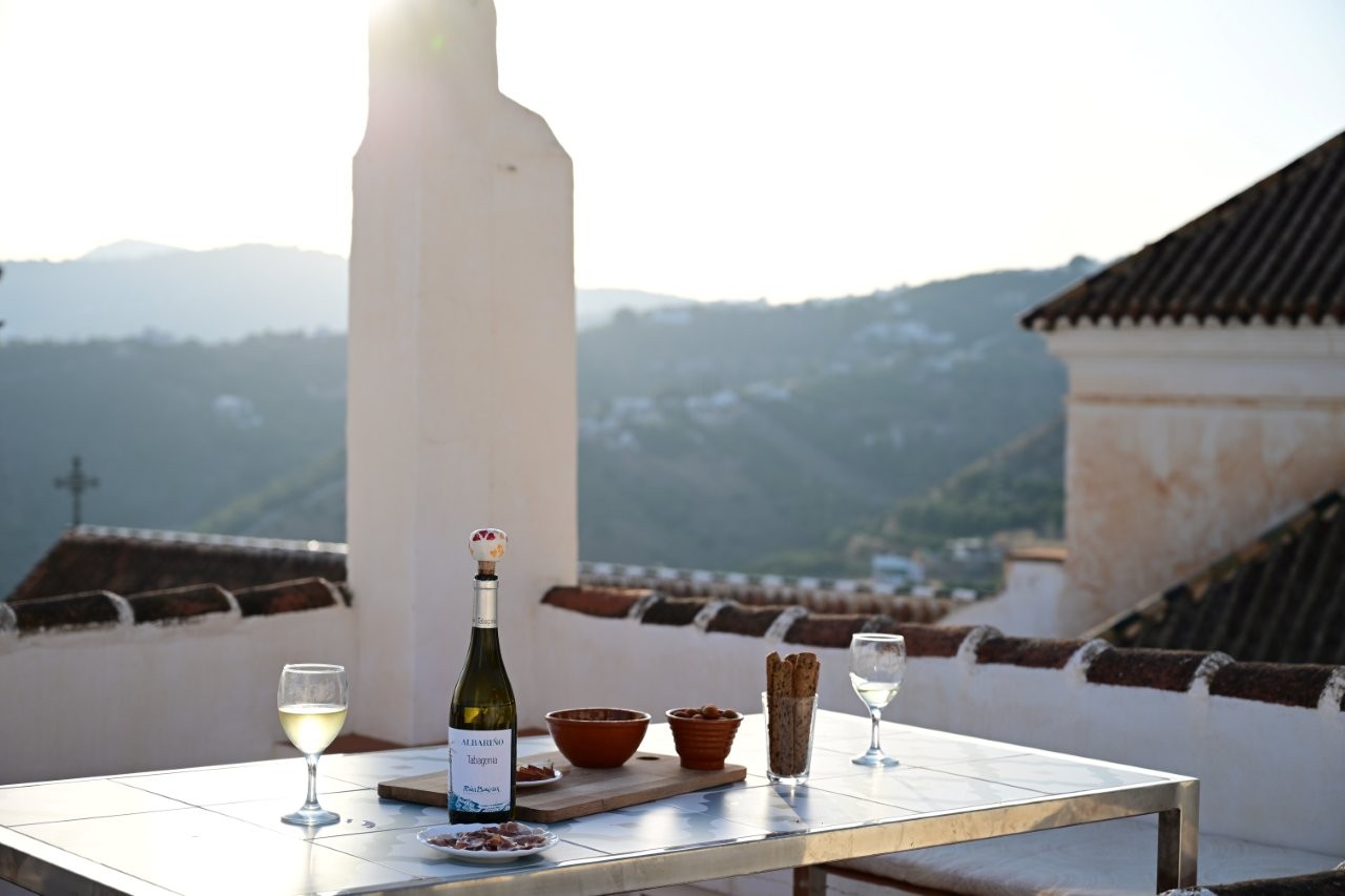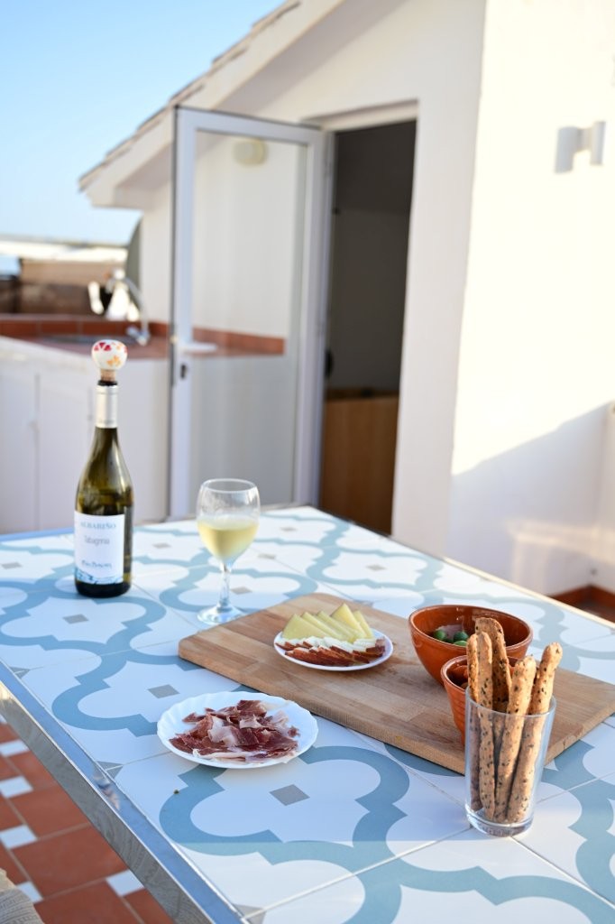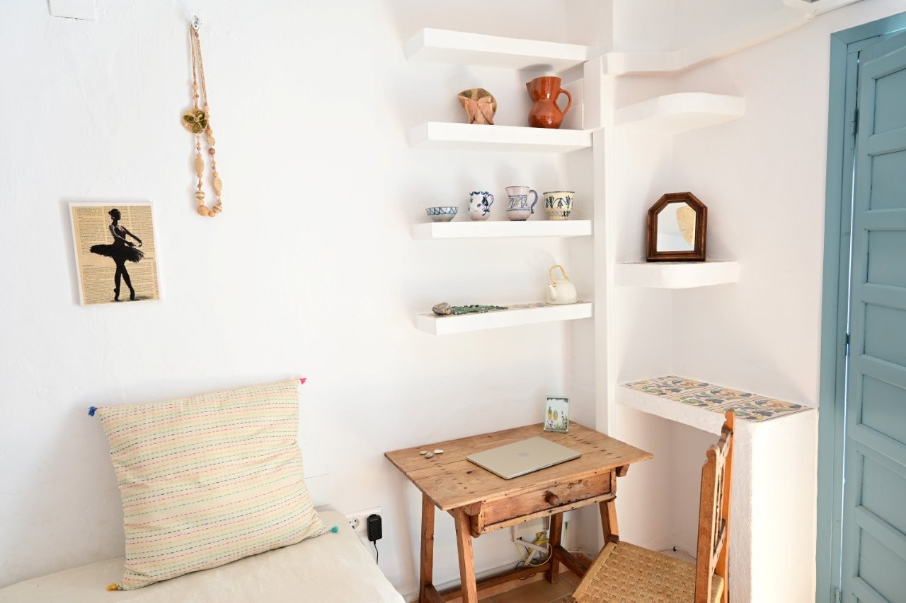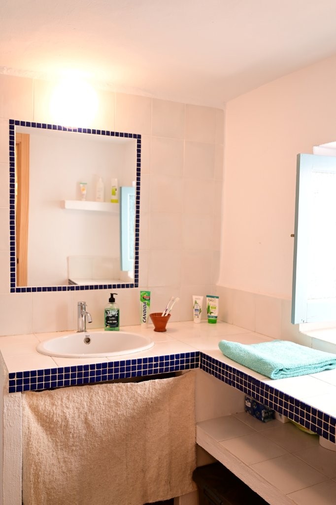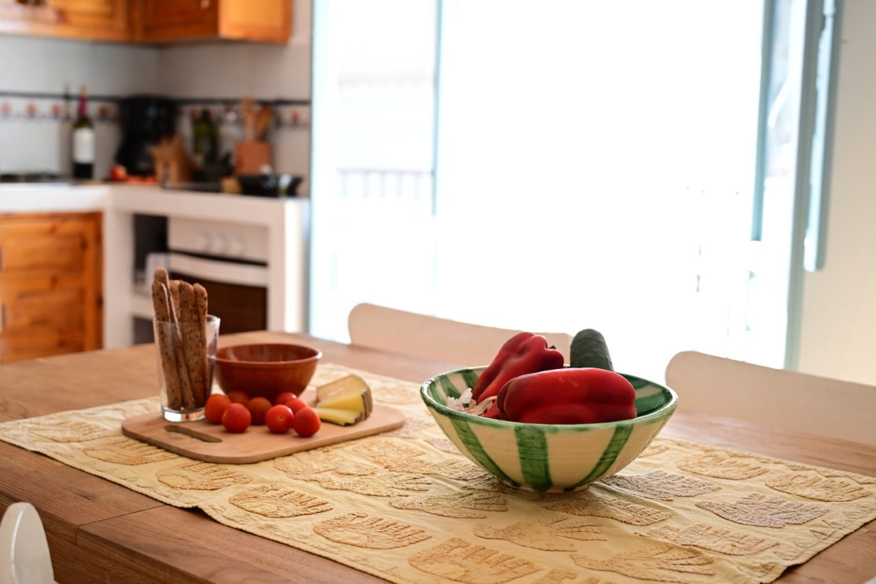 At every time of the year, the spacious terrace will be one of your favourite places. You enjoy the view of the old church, the mountains, the white houses and even the sea. A table specially designed by the owners and spacious brick benches invite you to enjoy dinner at sunset.