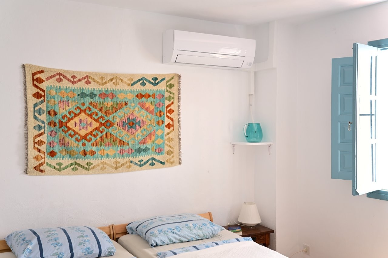 In the sleeping room you can choose whether to sleep in two single beds or combine them to a double bed. A newly installed air-condition keeps you warm in winter and cool in summertime.