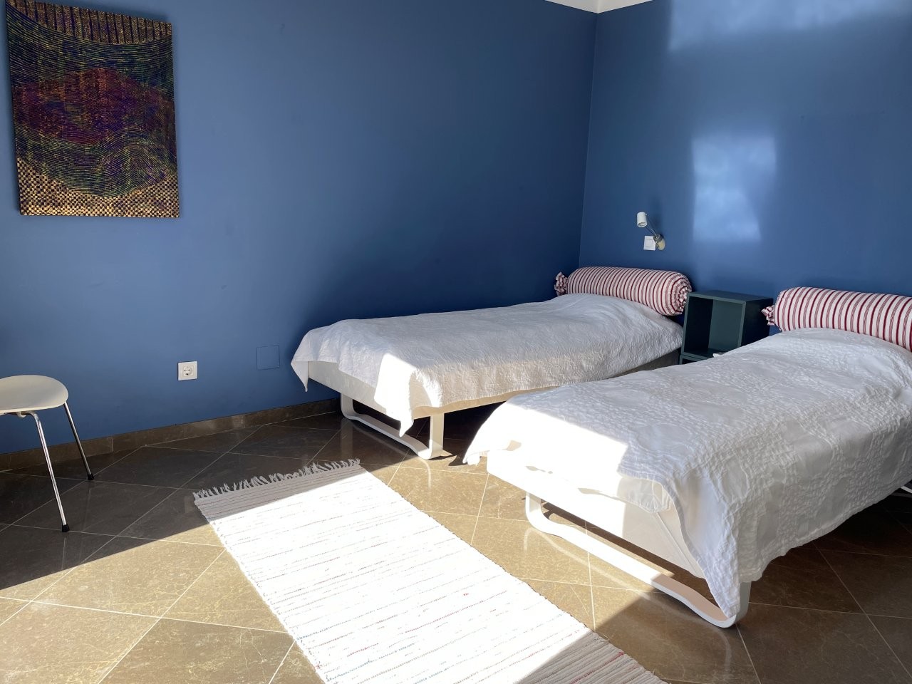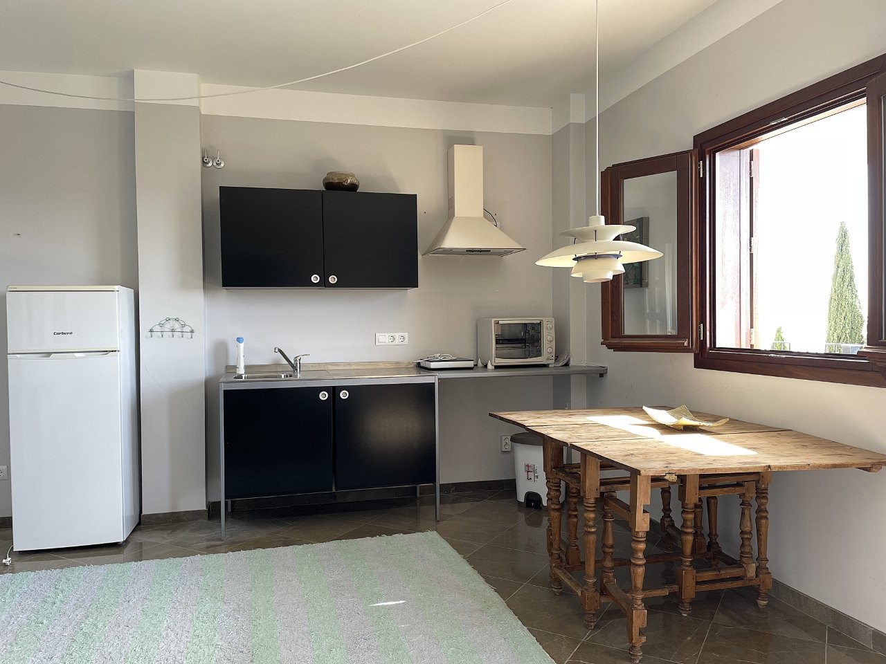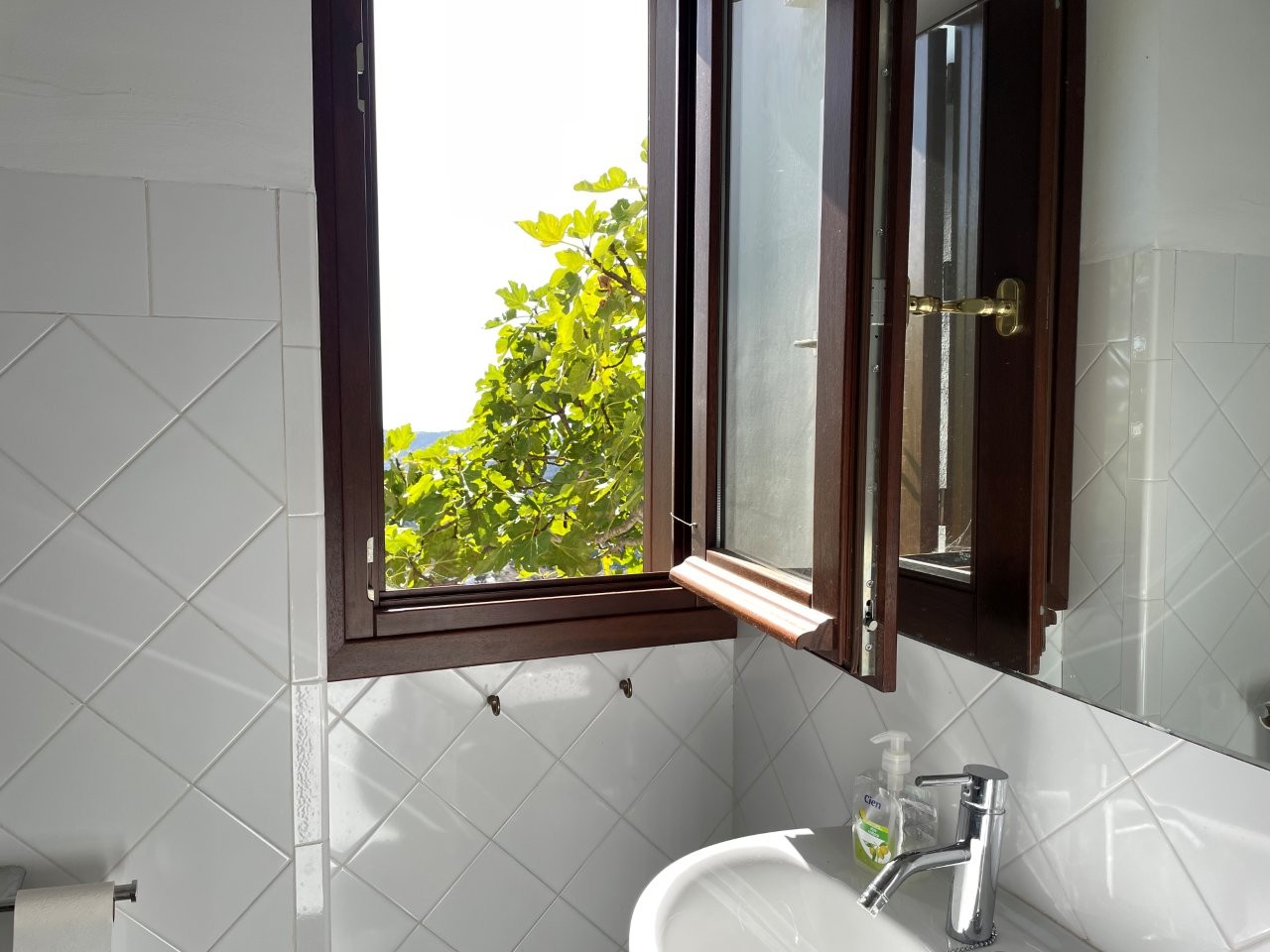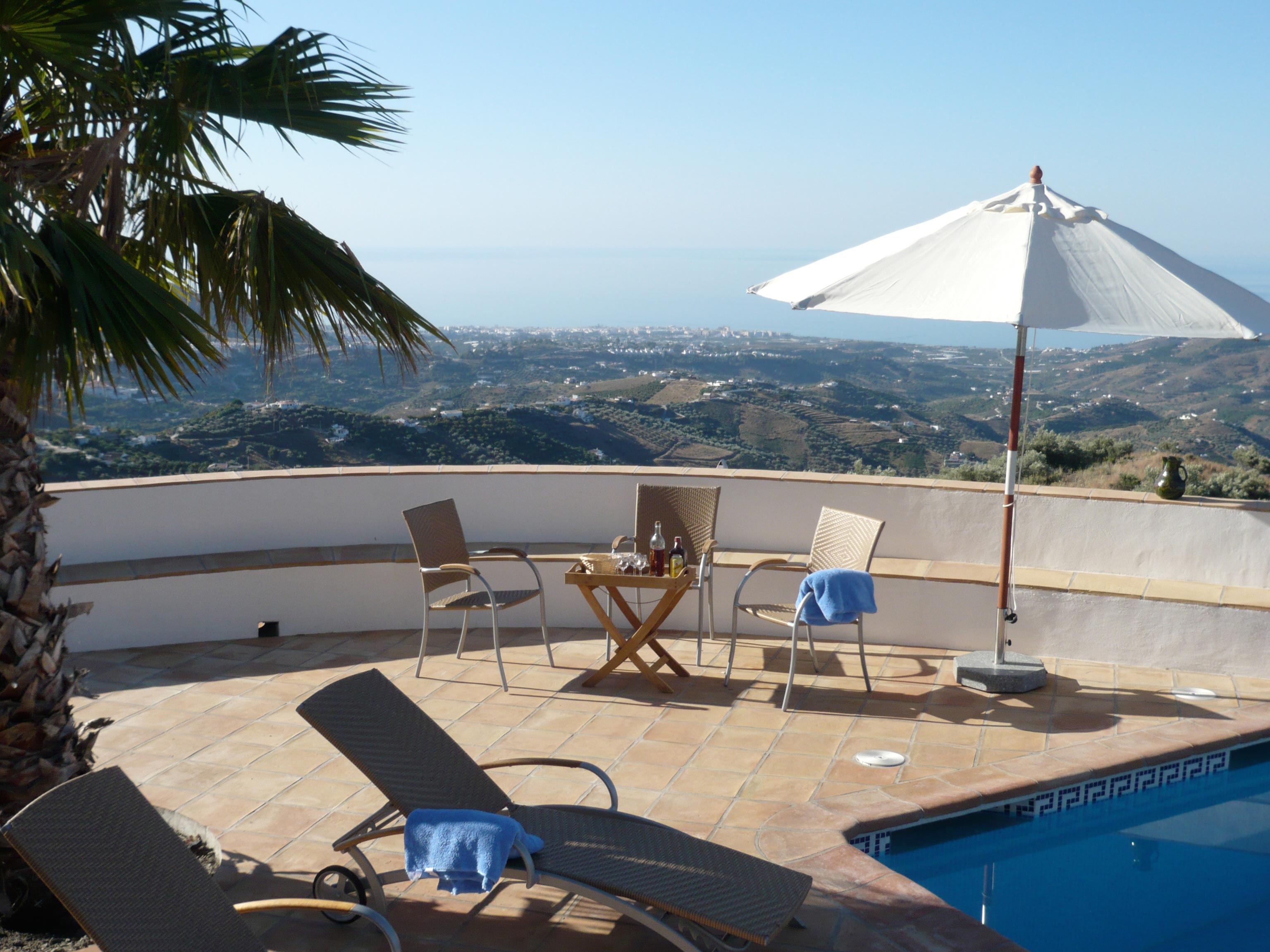 Outside you will find a lovely and private swimming pool area with an unbeatable view and sunshine from morning to evening and a small backyard with fruit trees and cozy morning and evening sun spots.