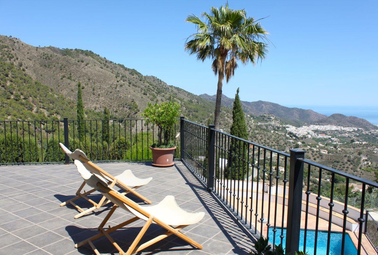 This impressive two-level villa, located above Frigiliana, offers a rare 360-degree panoramic view of the village, the surrounding mountains, and the sparkling Mediterranean Sea.