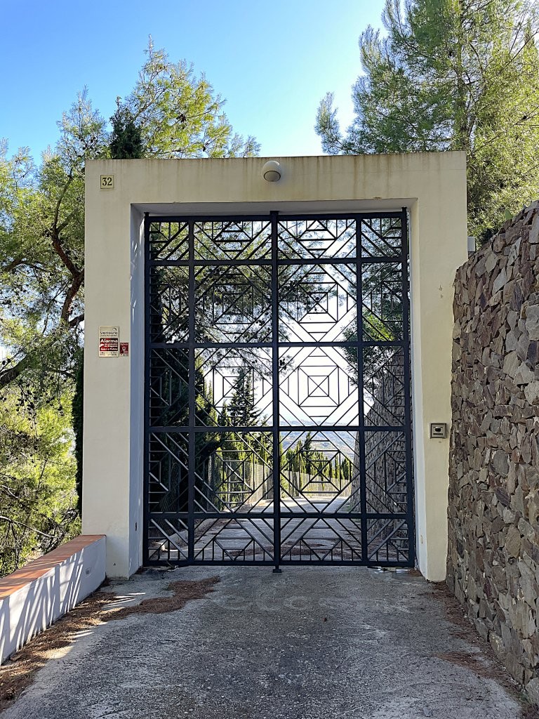 A decorative remote-controlled gate, a beautiful driveway, and private parking.