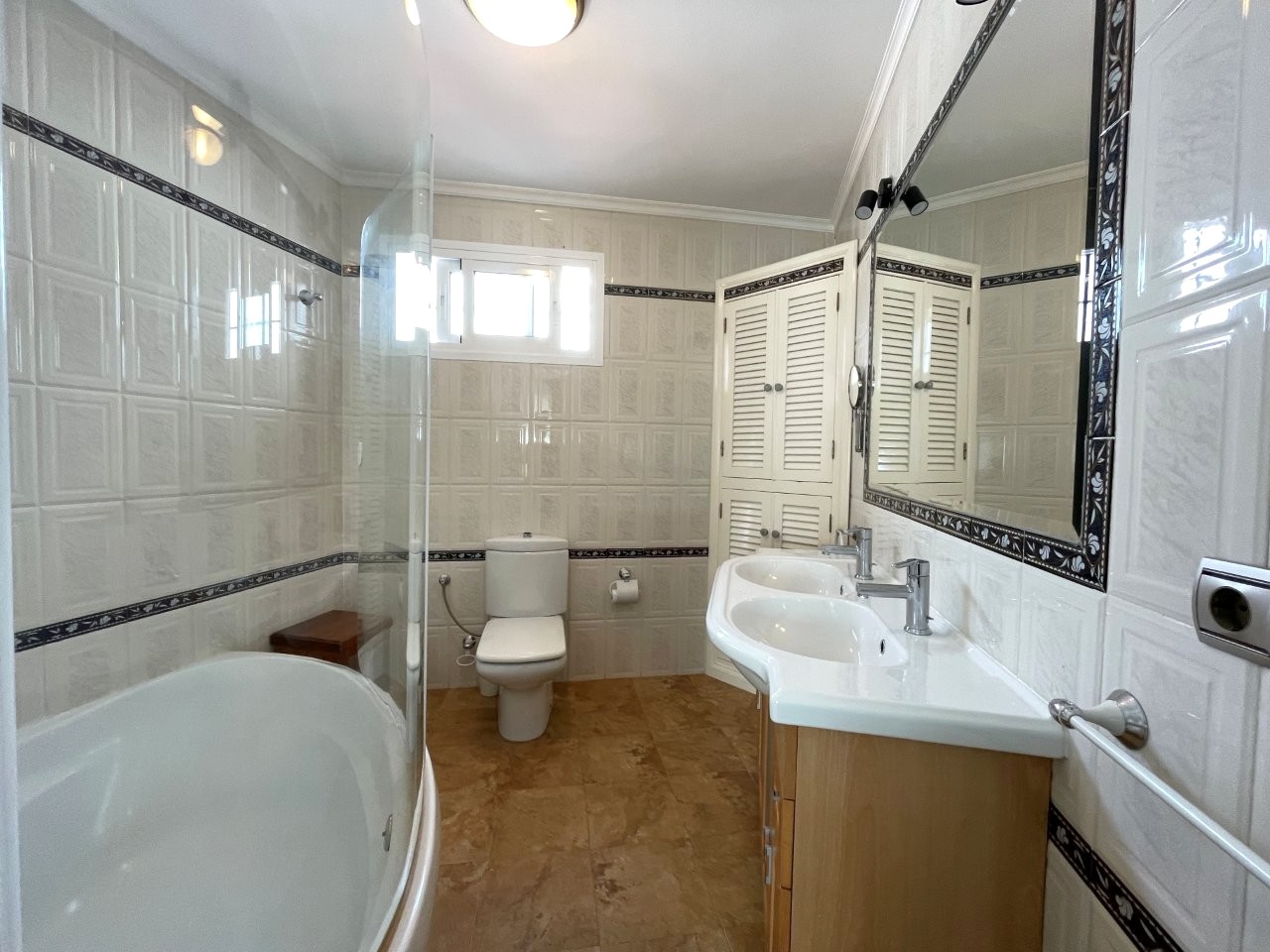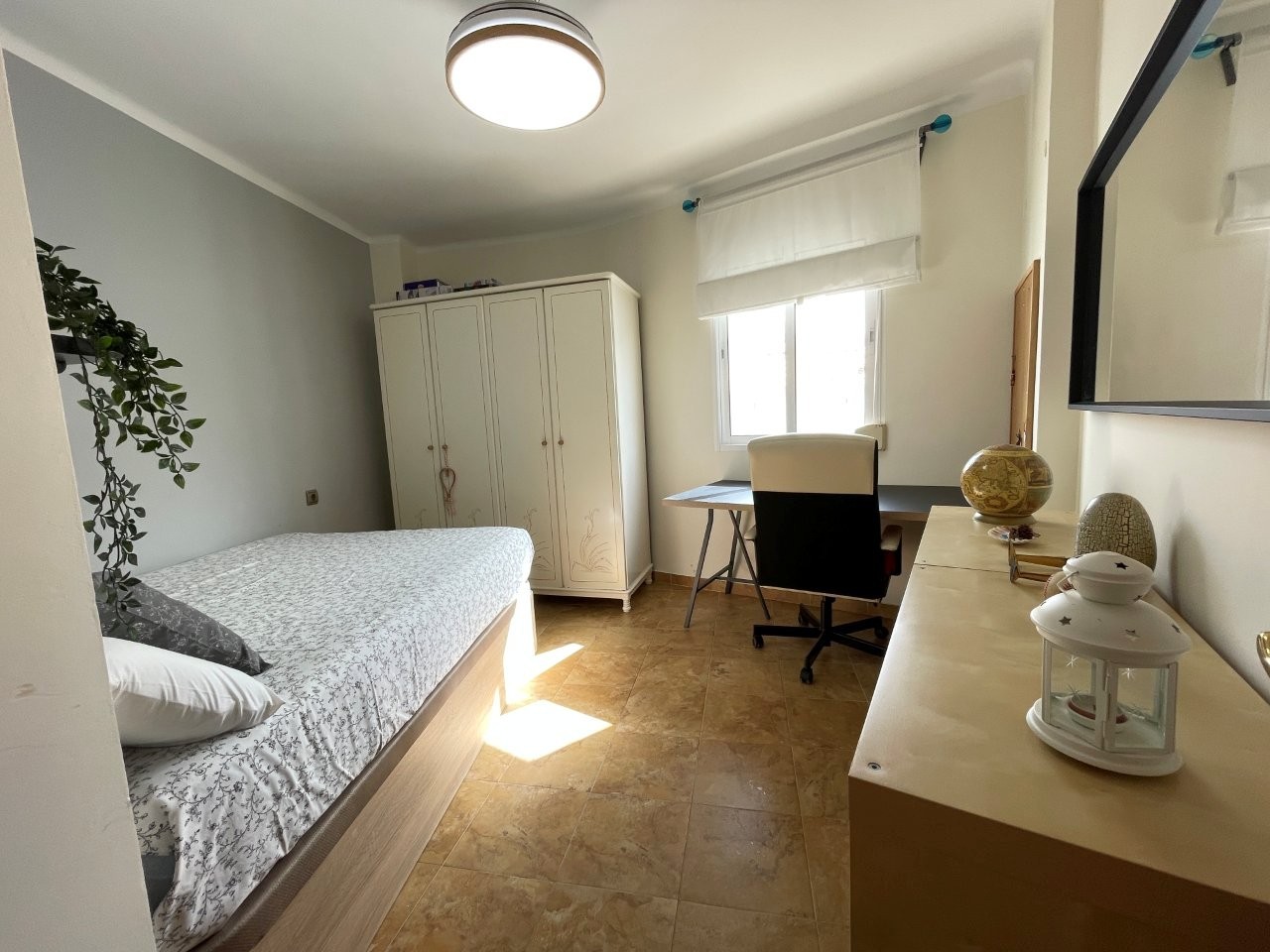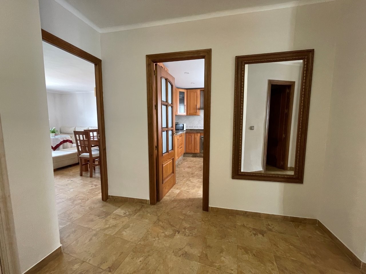 Lejligheden rummer 4 gode soveværelser og 2 badeværelser, hvoraf det ene er en-suite. Det store køkken ligger i åben forbindelse med en lys og rummelig stue, som har direkte adgang til en balkon med smuk udsigt over området og Middelhavet. Gode muligheder for at vælte nogle vægge og lave større soveværelser og stort åbent køkken/stue.