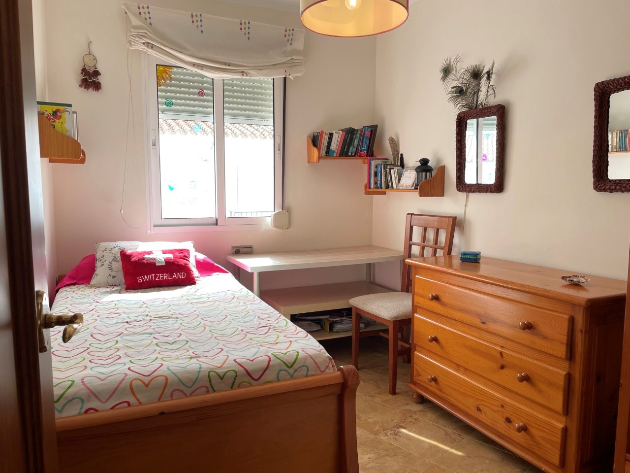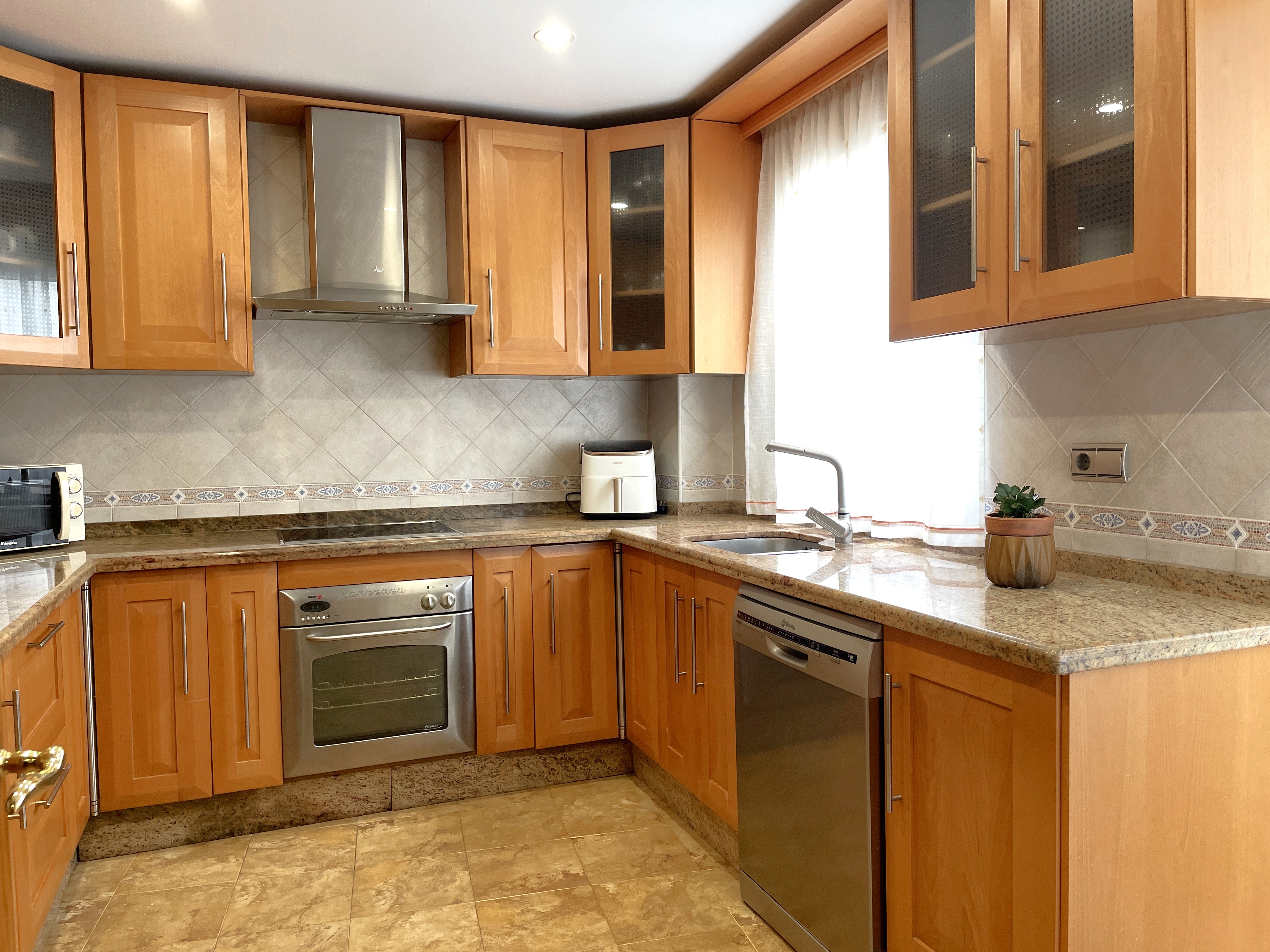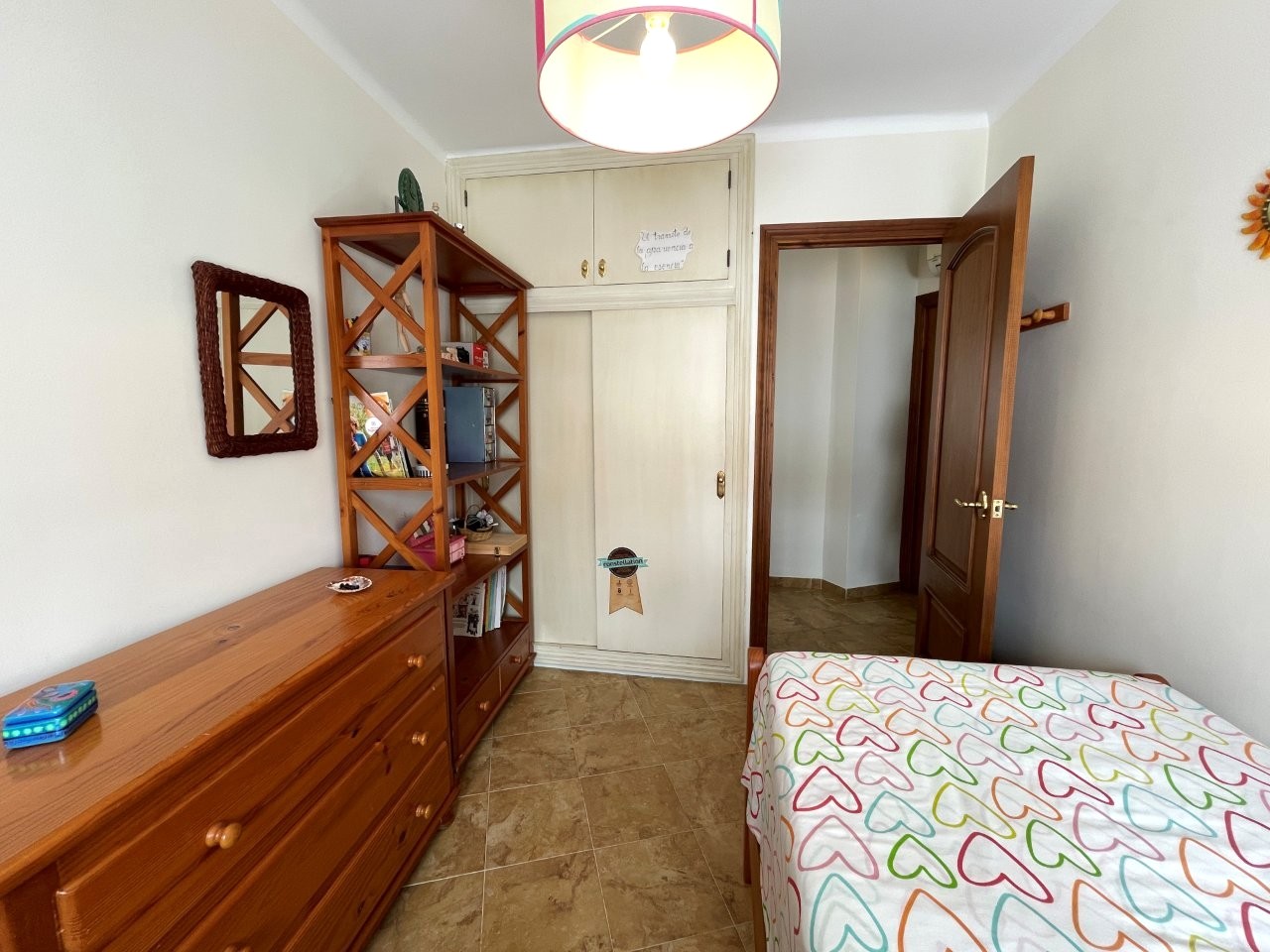 Lejligheden rummer 4 gode soveværelser og 2 badeværelser, hvoraf det ene er en-suite. Det store køkken ligger i åben forbindelse med en lys og rummelig stue, som har direkte adgang til en balkon med smuk udsigt over området og Middelhavet. Gode muligheder for at vælte nogle vægge og lave større soveværelser og stort åbent køkken/stue.